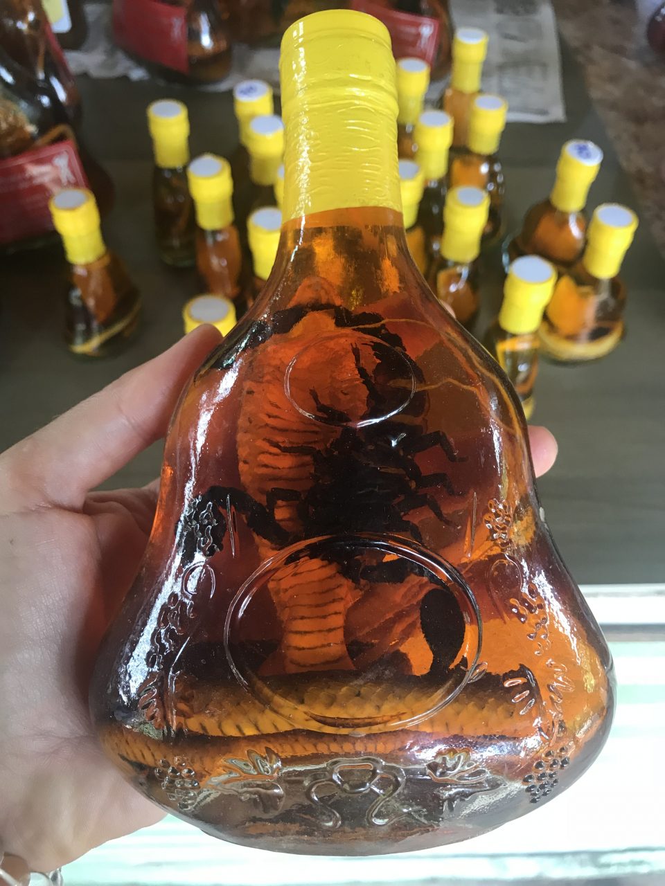 Sampanların durduğu küçük iskelelerde hijyenden uzak yemek yerleri ve yöresel ürünlerin satıldığı sergiler bulunuyor. Bu ürünlerin en korkuncuysa içinde ölü yılan ve akrep bulunan (ve doğal afrodizyak olduğu iddia edilen) şaraplar. Dener misiniz bilmem.